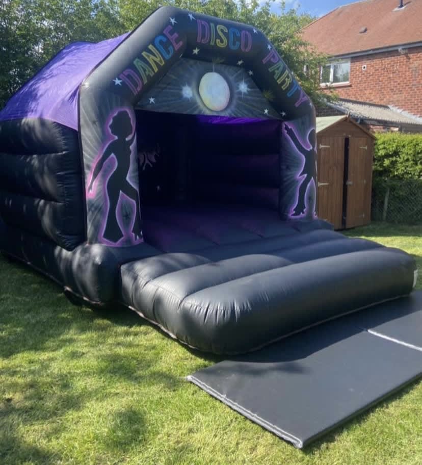 Disco castle Our Unisex disco-themed bouncy castles even come with speakers and lights, so you can create a disco show inside the inflatable, play your favourite songs, and get the children dancing until they're tired out !!