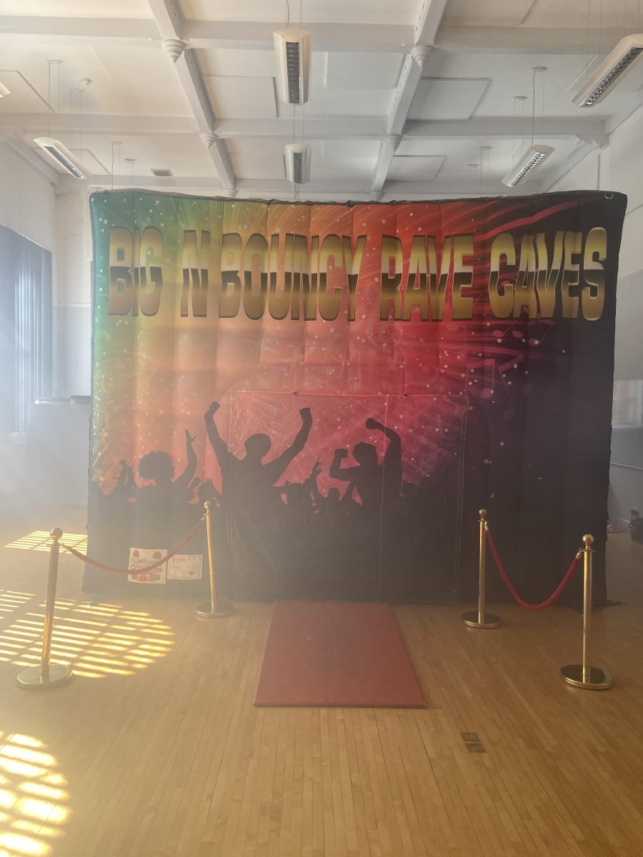 Matt black front design rave cave Big N Bouncy Castle hire introduces our popular Black cube with disco themed digitally designed front giving you that extra feel to your Big N bouncy rave cave experience with a sloped roof. The black cube has definitely been proven to be one of our most popular nightclubs so we made sure to get others but with a few changes and various colours such as gold, & silver these have no front design The sloped roof will make sure it can be used in sunshine or rain as the rain will run straight off the roof rather than holding it so your party can go ahead no matter the weather. Included in the hire are laser lights, a smoke machine, disco lights and a bluetooth speaker which just connects up via your phone or laptop. Once the cube is set up a member of the team will connect your chosen device up to the speaker for you and away you go! Choose your own music and enjoy your night partying in your back garden! Please be aware the nightclubs are overnight hire only. What we provide ◦ Inflatable cube ◦ Blower ◦ 1x 25metre extension leads ◦ Lasers & stand ◦ Bluetooth speaker ◦ Fog machine & liquid ◦ Vip red Matt ◦ Vip barriers