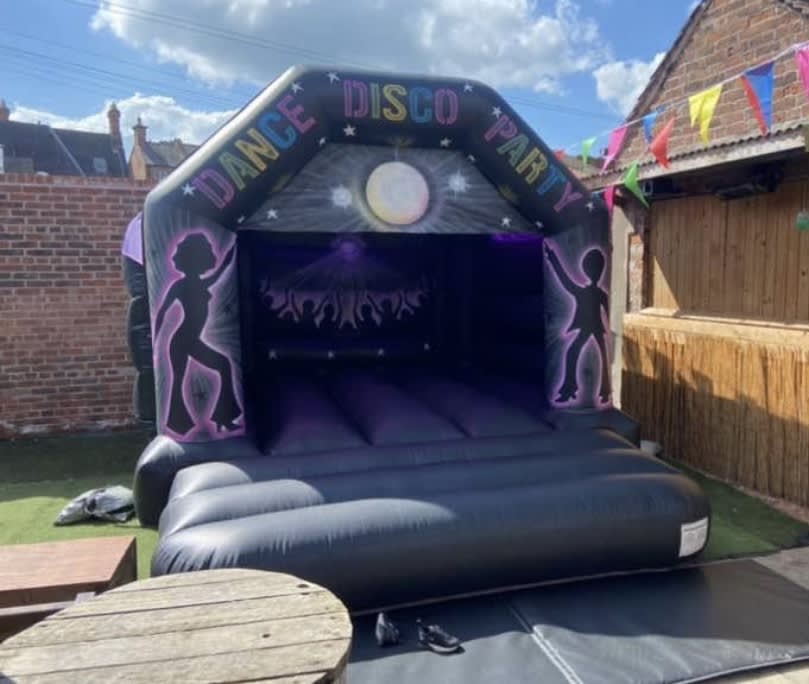 Disco castle Our Unisex disco-themed bouncy castles even come with speakers and lights, so you can create a disco show inside the inflatable, play your favourite songs, and get the children dancing until they're tired out !!